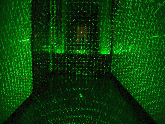 Wprowadź trochę magii na swoim wydarzeniu - laser wyświetla ponad 200 promieni świetlnych w kolorze zielonym oraz czerwonym, które wędruja tam i z powrotem stwarzając zadziwiający efekt, który może być wyświetlany na ścianie, suficie, deptaku oraz parkiecie tanecznym.